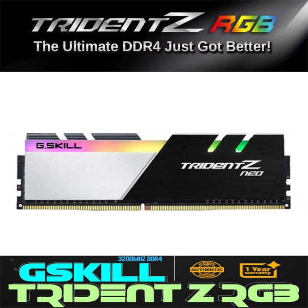 The latest G.Skill Trident Z NEO RGB Gaming Desktop RAM brings unparalleled memory performance and vibrant RGB lighting to any gaming PC or workstation with latest AMD Ryzen CPUs and AMD DDR4 motherboards, It engineered and optimized for full compatibility on the latest AMD Ryzen platforms. This RAM is designed for memory performance with the latest AMD Ryzen platforms, Trident Z Neo is optimized to unlock the full potential of the AMD platform to its maximum speed and also featured with a contrast of black brushed aluminum and powder-coated silver, the Trident Z Neo dual-toned heatspreader adds power and boldness to your next-gen build. The Trident Z Neo features a beveled edge along the top of the signature tri-fin design with the asymmetrical slant to achieve a sleek and clean look. It is crafted with hand-screened memory ICs and custom 10-layer PCBs, each and every module is made for maintaining the best signal integrity to achieve fast overclocking performance. This RAM is fully control and customize the 8-zone RGB lighting through the downloadable Trident Z Lighting Control software.